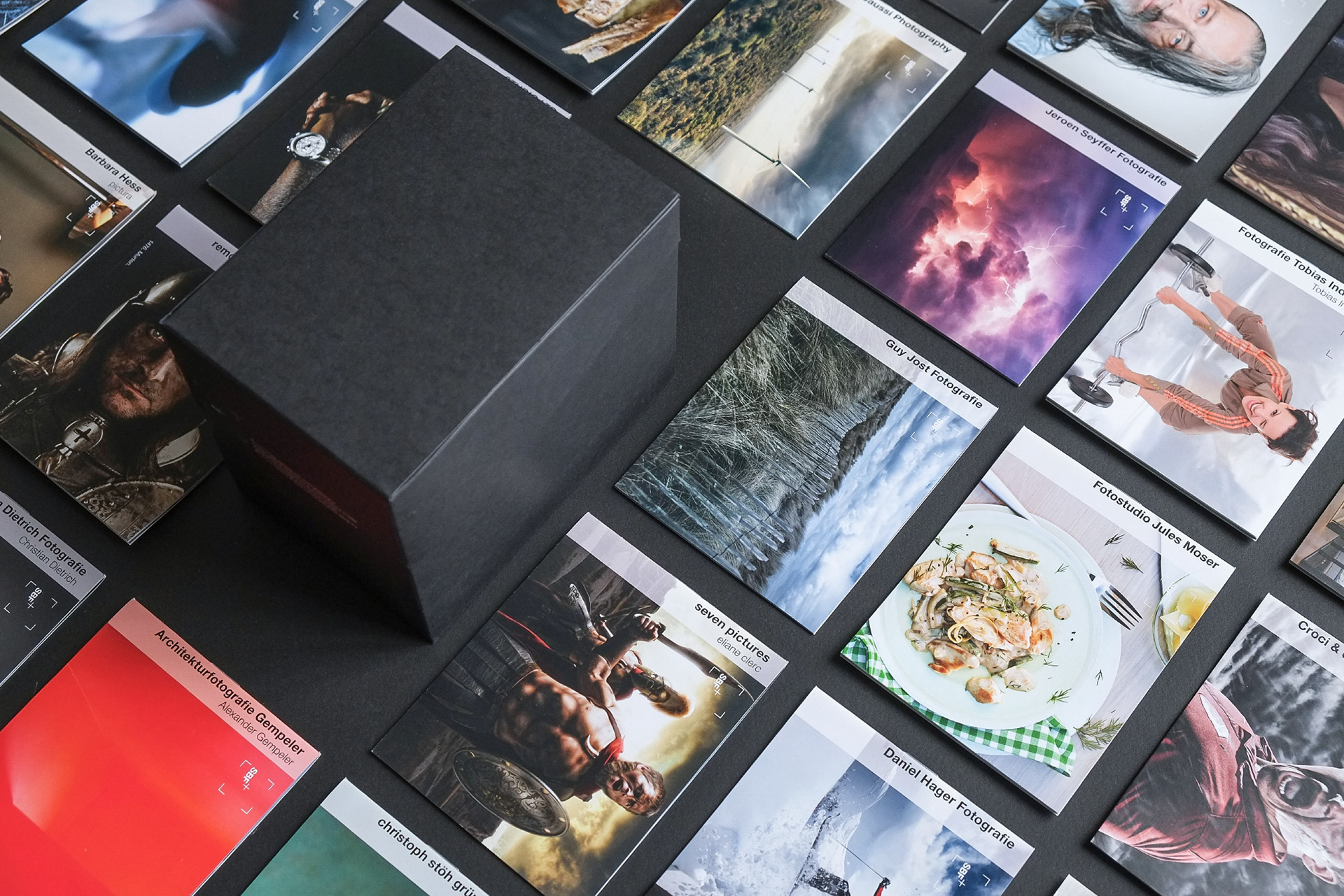 Um sich bei Werbeagenturen und Grafikbüros zu präsentieren, wurde Reflektor mit der Konzeption eines Sammelwerks beauftragt. Entstanden ist eine schlichte, schwarze Klappbox, welche mit 50 mehrseitigen Portfolios die Arbeiten der einzelnen Fotografen prägnant in Szene setzt.